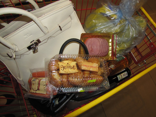 Я так радовалась, когда посмотрела на ценник - дело в том, что я взяла с собой всего 3 тысячи, а он стоил 2)) В общем, я планировала накупить еды в рояле и погнать с Малышкой Ко на ее дачу, но Ко приехала не с пустыми руками, а с пятилитровой бутылкой спирта (бабушка попросила отвезти, чтобы потом сделать наливку из смородины). В общем, я потащила Колес в качестве консультанта в Бюстье, и вокруг нас стоял устойчивый аромат спирта, когда мы покупали этот купальник)) Кстати, он уже шестой в моей коллекции, но с учетом того, что на пляже в этом году я была всего раз, мне придется взять их все с собой на Кипр - не зря же я их покупала)) В общем, еды мы не стали набирать много, так как тащили этот спирт по очереди, и руки у нас просто отваливались))