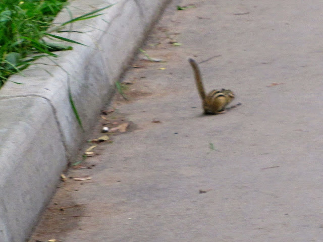 Прямо перед нами по дороге бегал маленький, хорошенький бурундучок) Он был просто прелесть)