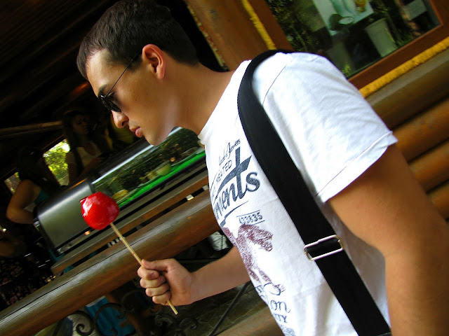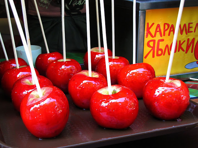 Кстати, о красном - эти яблочки неимоверно вязнут в зубах, так как они несколько часов пеклись на солнце... Всю эту карамель мы с Максом пережевывали по полчаса и смеялись друг над другом))